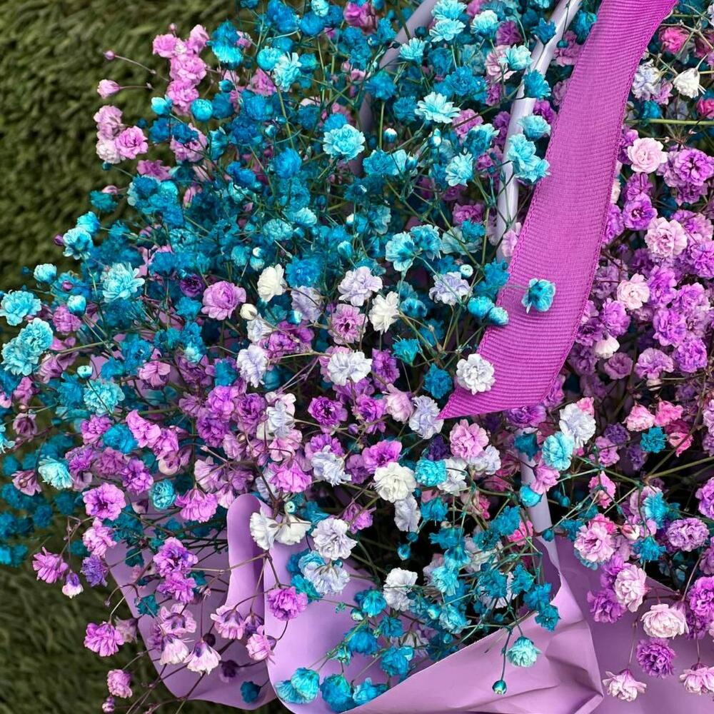 Превосходный комплимент из радужной гипсофилы в удобной стильной сумочке станет отличным подарком для ваших родных и близких ❤️