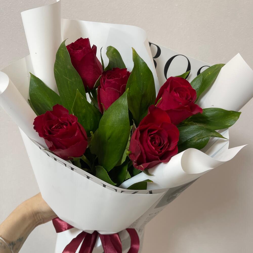 РОЗА КЕНИЯ С ЗЕЛЕНЬЮ В БЕЛОЙ УПАКОВКЕ в Чегеме